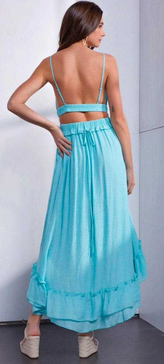 Asymmetric Ruffle Bottom Hem Open Back Cutout Dress