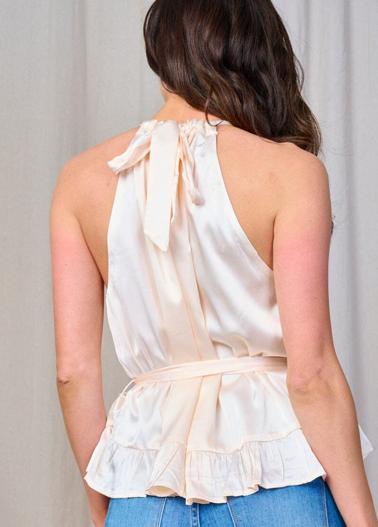 Women’s sleeveless halter top neck self tie satin top